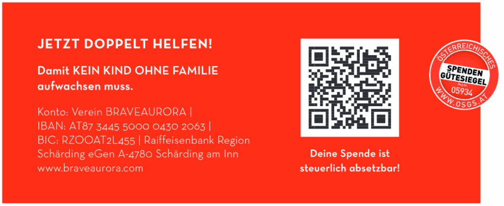 Im Aktionszeitraum 1. Juli bis 31. Juli 2025 wird jede Spende an BRAVEAURORA von unseren Matching-Partner:innen verdoppelt.