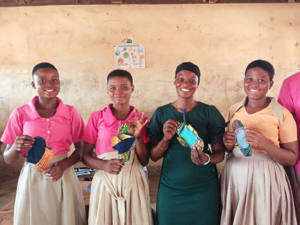 According to a local study, 95% of girls in Ghana do not go to school when they have their period! All our projects therefore focus on girls and women, empowering them to become self-determined and achieve gender equality. This also applies to the Girls4MHM (GIRLS FOR MENSTRUAL HYGIENE MANAGEMENT) project..