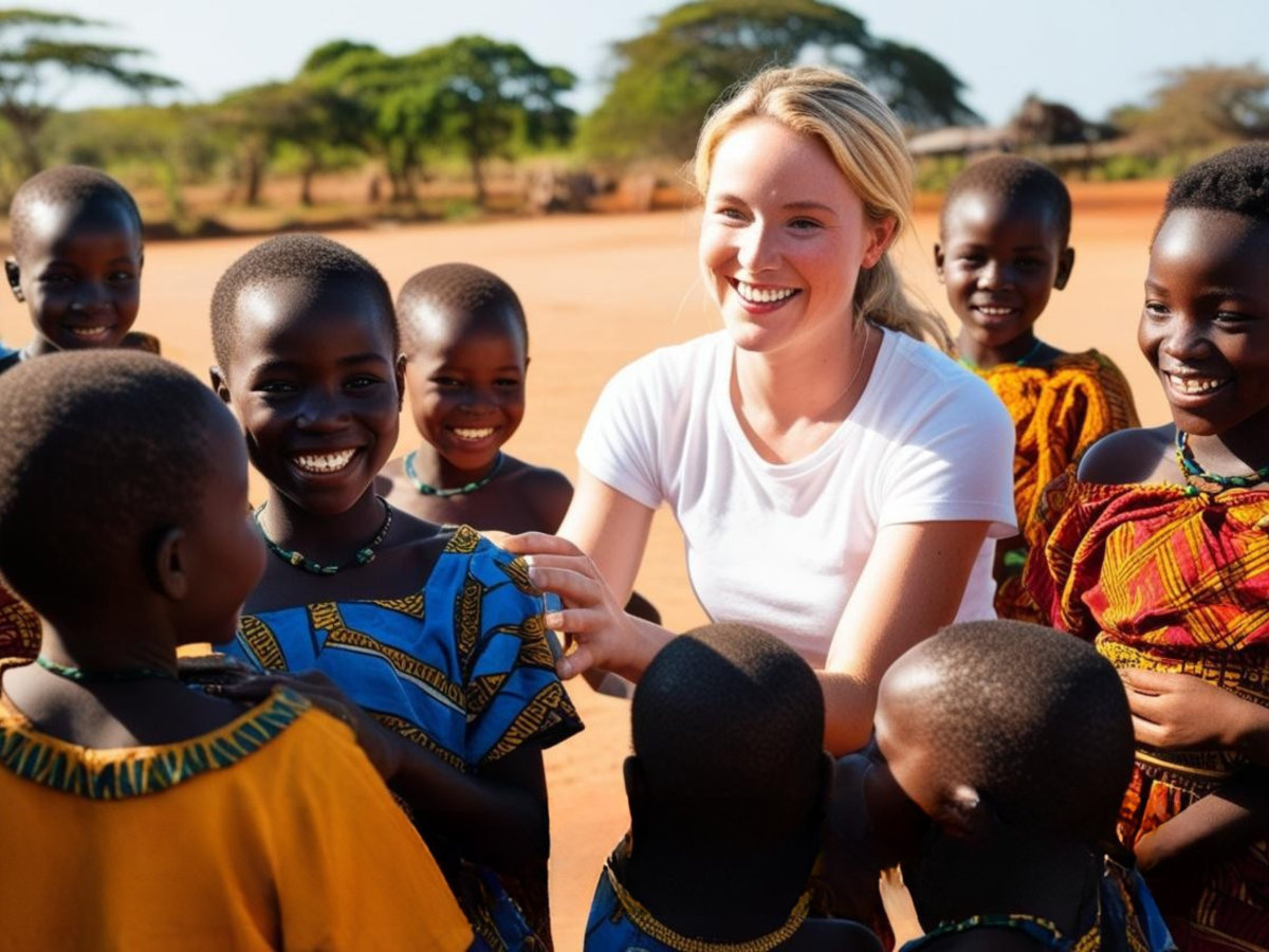 This image is intended to illustrate voluntourism and was artificially generated.